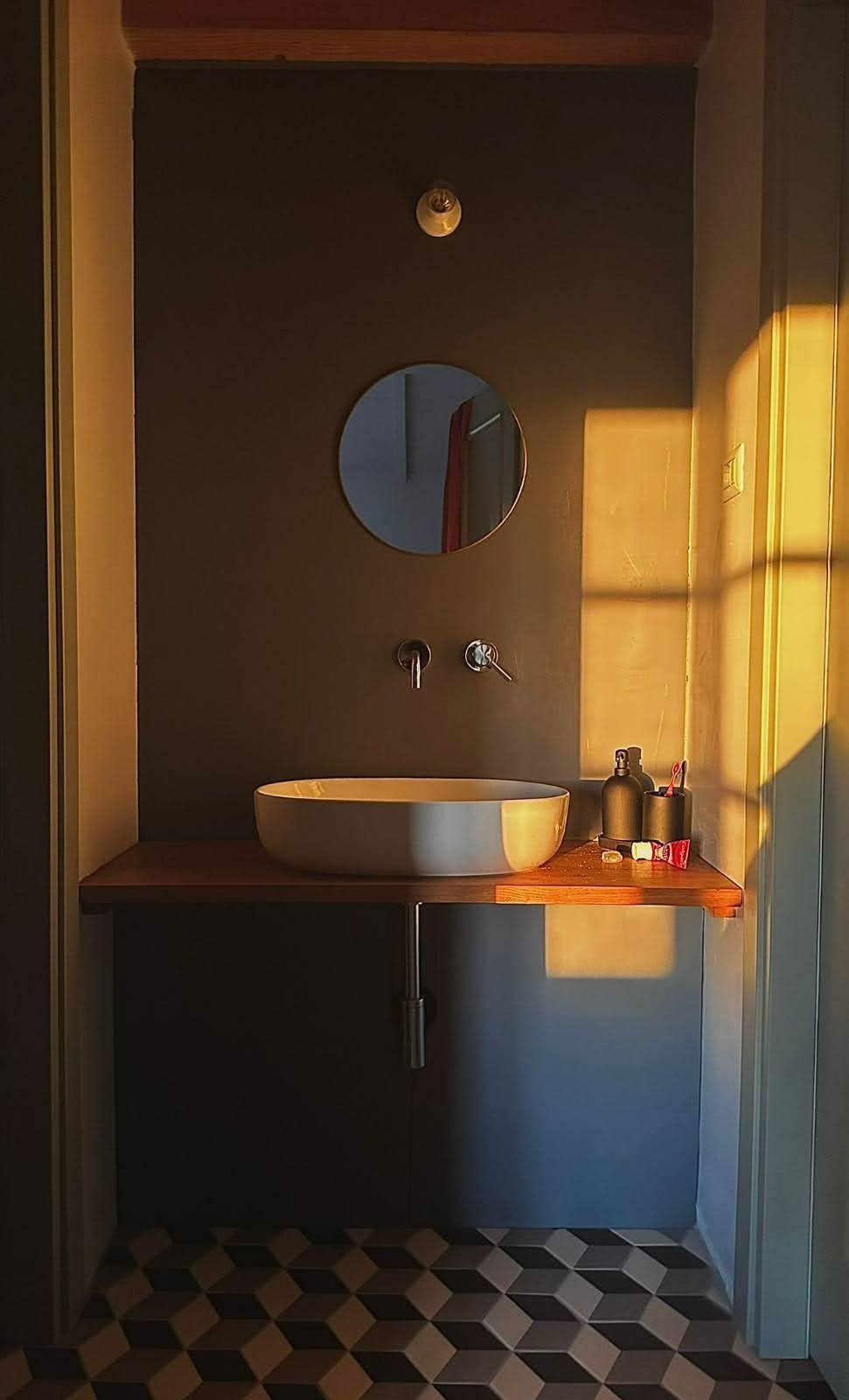 Original terracotta floors, lime-based mortars, timber from the property's own woods. The renovation was done by local artisans using materials sourced from small regional workshops. The house carries its history visibly, and that's exactly the point.