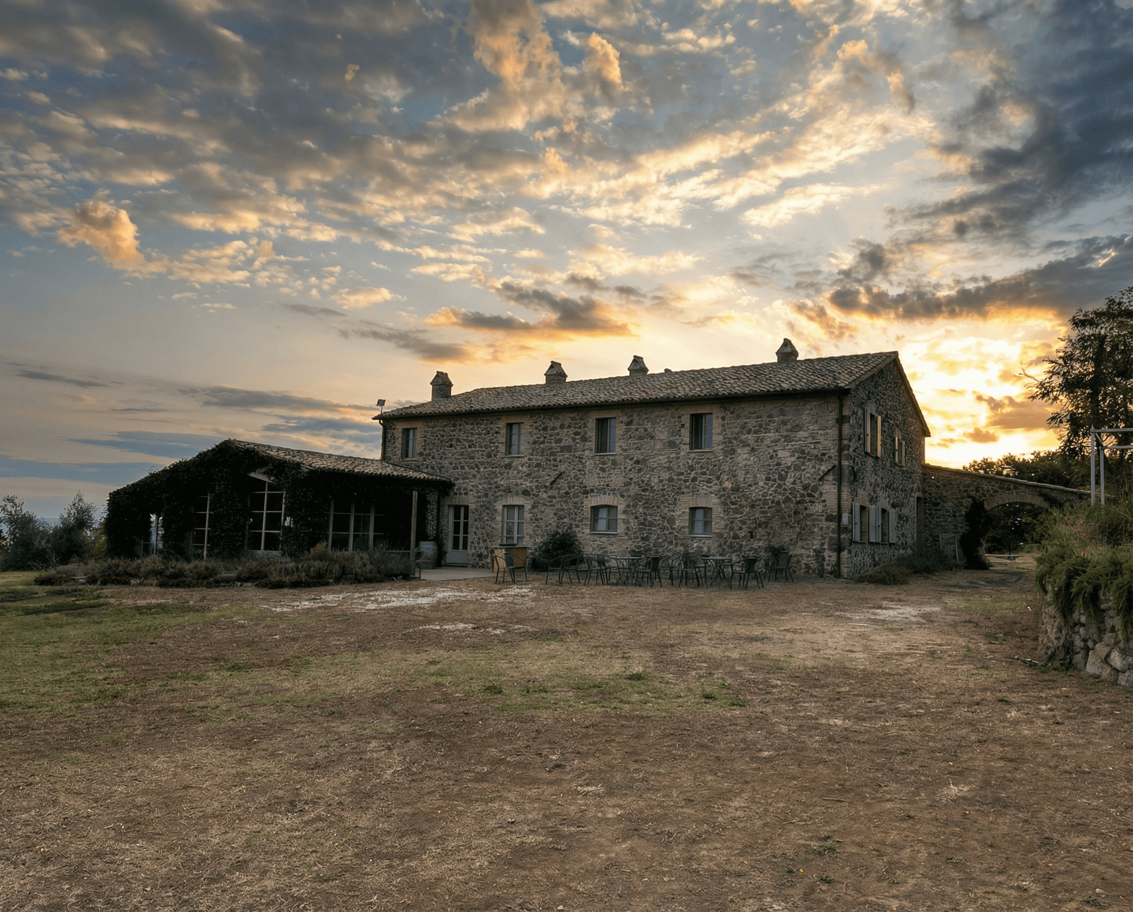 The property Eliza and Giovanni found in 2017 carried a long history and a great deal of silence. "An old estate once owned by a noble family and home to three farmer families under the traditional mezzadria sharecropping system, abandoned since the 1980s." No water or electricity, the roof collapsed in places, six hectares of land - including 3.5 under vines and about one hectare of olive groves and fruit trees - waiting for someone willing to start again. Slowly, with a small team and sustained manual work, they cleared the land and rebuilt the structures.